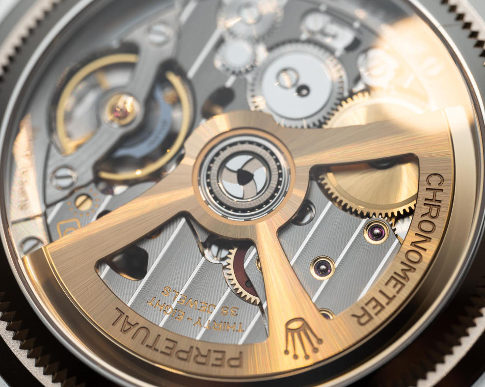 For a Rolex, the movement was stunning. It was great when compared to most watches, but we know Rolex doesn’t put much time into decoration as it usually hides movements behind solid casebacks. There are signs of change on that front, but this is certainly the best finishing you’ll get on any current perfect Rolex clone watches. The sunny rays on the skeletonized rotor catch the light and play against the striping on the bridges below, which feature a nice, polished band between the wider stripes, which actually have a slight curve to the internal striations. As a reminder, the movement has all the wonderful Rolex tech, is rated to -2/+2 seconds per day, and delivers 70 hours of power at 28,800 vph.