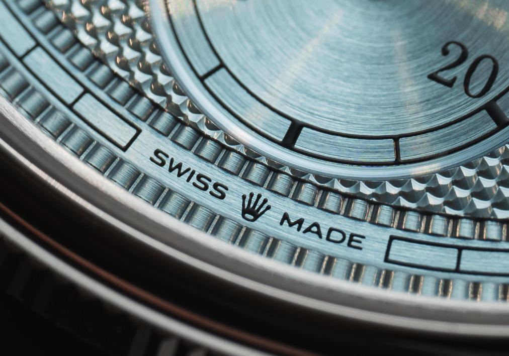 About that dial. It’s so much richer than the other ice blues that 1:1 copy Rolex watches uses on other platinum models like the Day-Date and the Daytona. It’s undoubtedly the exact same hue, but the variation created by the guilloché brings it to life. The blues are darker and the highlights are whiter, a wider dynamic range opened between the two for a more engaging experience. Word is that the guilloché might in fact be done by hand (Rolex is unclear, but has said that it uses traditional engined-turned technique). Whether it is or isn’t, the pattern is extremely precise in its repetition. While I could have done without the “Superlative Chronometer” text, it didn’t bother me while handling the watch, and my eye wasn’t drawn to it. The brushing on the slim minute track and the subdial complement each other perfectly and help to add variety to the dial (though I don’t know if it was needed).
